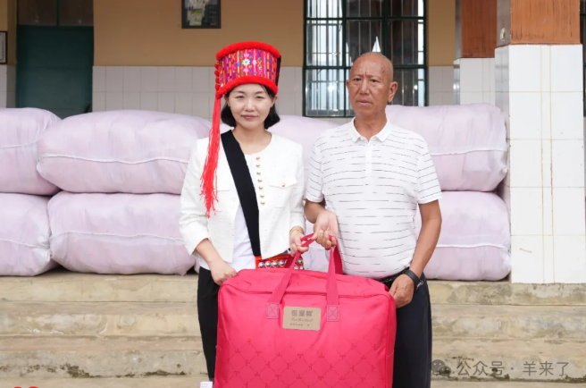 仪式上,“亿人善衣 衣被天下”公益项目负责人刘静茹向张正辉校长赠送恒源祥星级羊毛被,用一“被”子的温暖,向张校长在乡村的长期坚守、辛勤耕耘与无私奉献表示敬意。
