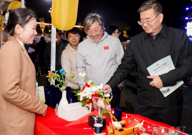 启动仪式开始前,江苏省文化和旅游厅党组成员、副厅长钱钢,江苏省文化馆党总支书记、馆长、江苏省非遗保护中心主任赵彦国等领导参观非遗展示活动,并亲临恒源祥展位,了解恒源祥以非遗技艺打造北京冬奥会“绒耀之花”的故事。
