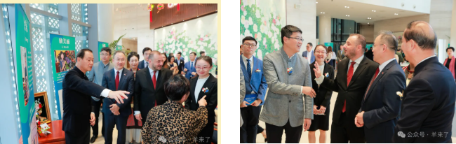 展会现场,励老师向中国驻塞尔维亚大使李明、塞尔维亚文化部助理部长斯坦科·布拉戈耶维奇等与会嘉宾介绍非遗作品,并赠送伴手礼。
