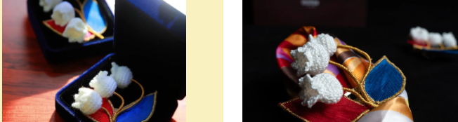 本次展会,恒源祥为与会嘉宾准备了伴手礼,礼品是一款特别的胸针,胸针整体颜色取自于塞尔维亚国旗的颜色,运用海派编结技艺钩织了白色的铃兰花,用红色、蓝色的提花暗纹刺绣布料制作了叶子,再用金线缠绕枝干组合而成。