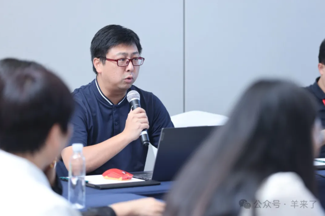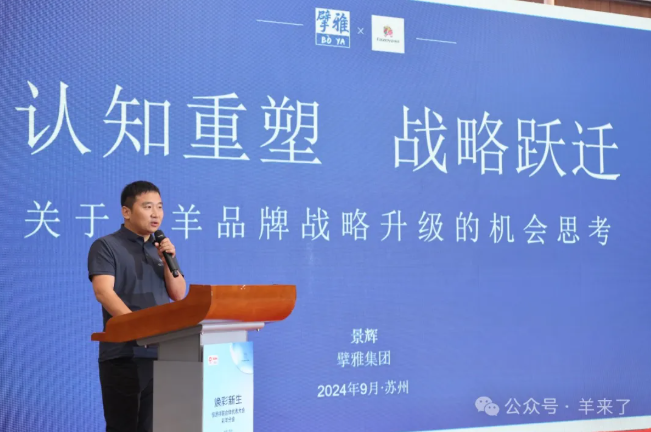 随后,擘雅集团总经理景辉以产业规划的思考为主题发表讲话。景辉提出了品牌战略升级的深入思考。他从重新理解品牌、品牌战略核心、品牌战略选择、产业机会洞察、战略机会捕捉五个角度阐释了品牌定位的重要性,他强调,品牌战略的核心在于创造客户,面对经济下行的挑战,彩羊品牌应寻找布局机会,不断变化的市场环境中,如何通过创新和聚焦来实现品牌的持续增长和成功。