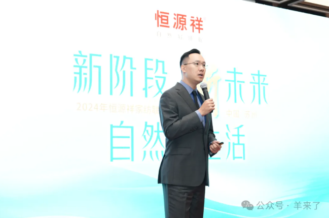 恒源祥家纺总经理孙蕴聪作“新阶段 新未来 自然好生活”主题讲话,首先国内外的经济环境进行了分析,居民消费力和信心有待提升,孙蕴聪表示同样身处逆境,等光至不如逐光行。紧接着他对2023年的情况进行了复盘,详细介绍了四个确定性增长亮点,确定性增量使得运营效率大幅提升,但提升运营效率并不能解决战略增长问题,因此在会议最后发布了新的品牌概念——自然好生活,孙蕴聪表示接下来会逐步开展概念设计、店铺选择和设计标准落地的工作,品牌致力于将自然之美与现代生活完美融合,传递专注自然可持续家居生活的品牌态度。