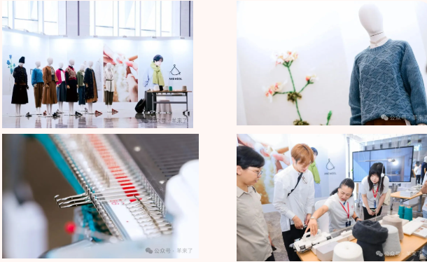 在2024恒源祥代表大会会场外设立的ANDWOOL、muuc品牌展展出的服装设计细节丰富,绒线元素以绣花、绒线衫、绒线外套、绒线背心等多种形式呈现,为整体搭配带来独特的视觉效果,展现了“手工制作,传递富足品质”的设计理念。展区内设立的可供现场体验的手工编织机,吸引了不少参会者前来体验手工编织的乐趣。