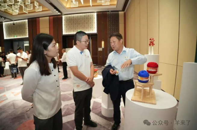 刘董对会场中陈列的绒线工艺品表示了赞许,表示要找到传统文化、恒源祥品牌与现代生活的连接点,在传承中创新性发展,这对推动绒线编结非遗文化和品牌文化多样性、多元性、可持续发展有着非常重要的意义。