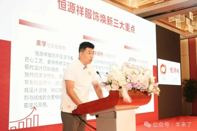恒源祥服饰产业总经理助理黄嘉杰向大家介绍了服饰焕新的重点,围绕用户体验、产品创新、渠道优化、市场维护、渠道维护等方面进行详细的解读,通过深化渠道合作,加大市场支持力度等多项举措为品牌焕新注入持续动力。