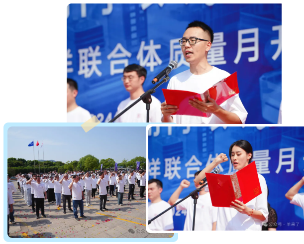 恒源祥家纺一厂员工代表江向宇向所有恒源祥成员们发出倡议。恒源祥家纺一厂员工代表吴婷艳带领大家在质量大旗下庄严宣誓。