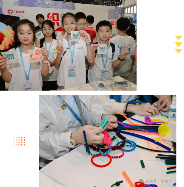 展区中央,一系列精彩的传统文化体验项目吸引了众多小发明家驻足。