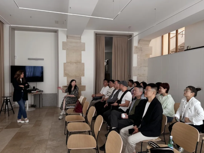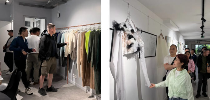 设计师分享了品牌工作室独特的设计理念,精致的面料,考究的细节及对服装品质的不懈追求,研学团成员与设计师们还进行了友好的交流,中西方不同文化之间跨越边界的对话,让时尚的边界变得更为宽广。