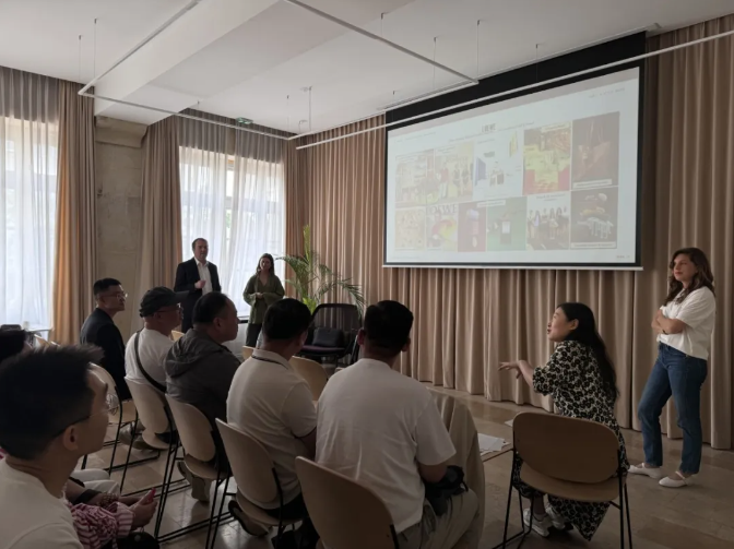 NellyRodi总裁 Pierre-François Le Louët等法方代表对研学来访团表示了热情的欢迎,这已经是宾主双方第三次正式会面。早在今年5月份,NellyRodi法方专家就前往上海恒源祥总部进行了为期三天的沉浸式调研。6月,恒源祥集团董事长兼总经理陈忠伟一行回访NellyRodi巴黎总部,双方围绕共同开展的“品牌美学焕新及应用项目”召开了阶段性会议。