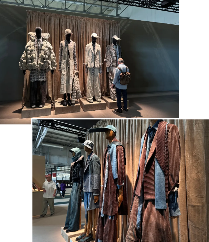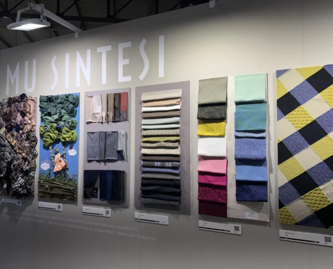 米兰MU展为品牌,设计师们营造时尚专业氛围,从接待到布置无不彰显意大利风情。在这里,研学团一行关注到面料设计的创新,功能性的迭代,潮流的前瞻性研发和对环境友好的可持续新发展计划。