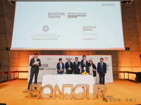 论坛中,联合国教科文组织世界联合会 (WFUCA) 与中法品牌高峰论坛组委会宣布共同发起《Bonjour Youth》全球青年创造力扶持计划,旨在搭建具有全球影响力的扶持平台,通过与全球城市及品牌的合作,为青年提供设计、创意、科技与艺术方面的机会,激发并培养其创新能力,用创造力搭建不同国家之间的文化对话,最终促进全球设计创意行业的合作与发展。百雀羚作为加入该计划的首个品牌,与发起方在现场进行了签约仪式。