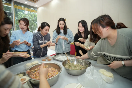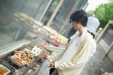 28日中午,青训营的成员们在环球品牌港开展了一场别开生面的团建活动。在青浦后勤同事的大力支持下,青年员工共同体验包饺子、做烧烤,为自己准备了丰富的一餐。其乐融融中,拉近了彼此的距离,也增进了大家的感情。