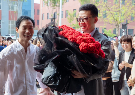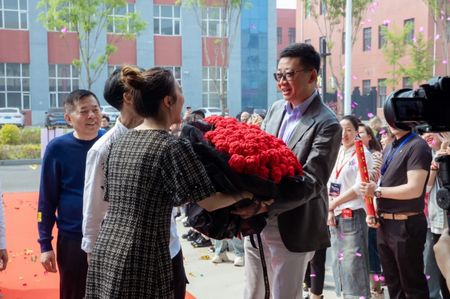 绒线是恒源祥品牌的独特文化符号,蕴含了深厚的品牌文化内涵,华北分会精心为陈董准备了99朵绒线编结欢迎花束。