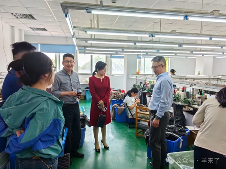 在参观学习了东方创业的党建活动室后,东方创业党委副书记、纪委书记、工会主席张鹏翼陪同恒源祥一行参观了位于松江的自有工厂,毛针织事业部技术中心主任郑期巍现场对毛针织、棉针织等产品的设计、打样、生产、检测以及技术研发等做了专业介绍。
