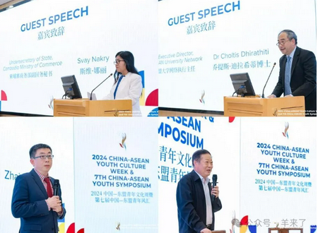 柬埔寨商务部副国务秘书斯维·娜丽,东盟大学网络执行主任乔提斯·迪拉希蒂博士,恒源祥集团创始人、擘雅集团董事长刘瑞旗,北京大学区域与国别研究院副院长、国际关系学院教授翟崑分别在仪式上发表致辞。他们共同认为,年轻一代将会是中国—东盟合作的主要推动者,文化周有力地促进了中国—东盟人文交流。此外,他们还希望青年代表们充分利用这个宝贵的机会加强沟通与合作,为中国—东盟关系注入活力。