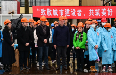2月1日,“致敬城市建设者,共筑美好‘云’未来”喜迎春节慰问活动在黄浦区广场065-01地块工地举行。