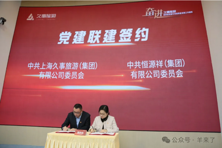 仪式上,久事旅游党委分别与黄浦区就业促进中心党总支、恒源祥集团党委签署了党建联建协议。