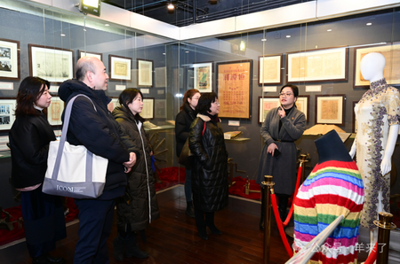 恒源祥集团党委委员、工会主席顾云尧,集团党委委员、党办主任吴仕佳,公益慈善中心总监王晓懿共同接待了上大美院一行,并互动交流。