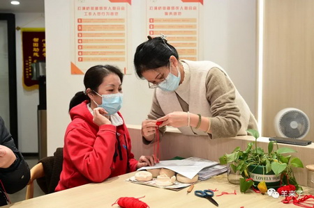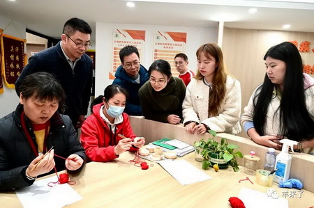 恒源祥为北京2022年冬季残奥会提供的500束颁奖花束,便是由中国残疾人福利基金会组织协调150位残疾人运用海派绒线编结技艺制作完成,她们在国际盛事中充分发挥自身特长,完成更深层地社会参与,同时收获非凡的荣誉感。上海市残联高度重视,党组书记、理事长杜松全,机关党委书记、副理事长莫彬彬先后来访恒源祥开展调研,希望上海的残疾人士也能通过学习海派非遗技艺,掌握谋生能力。在黄浦区多家街道阳光之家的邀请下,此次恒源祥在打浦桥阳光之家开展非遗体验课,希望通过教授非遗技艺,帮助残障人士提高技能水平,增强他们的就业能力和自我发展能力,同时也可以为社区的发展做出贡献。