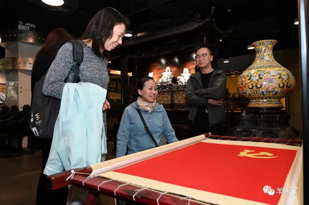 集团公益慈善中心总监王晓懿首先带领两位嘉宾参观了恒源祥的艺术文化展厅,通过介绍恒源祥与奥运体育事业的情缘、品牌发展历史、公益慈善项目及非遗传承保护等领域取得的成果,让来宾对恒源祥经营品牌、文化传播及社会责任担当等方面有了更加生动的理解与认知。
