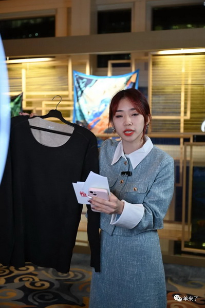 直播中,可可西里库南生态保护站副站长郭雪虎与网友们分享了平时工作巡山工作中会遇到的种种意外状况,他们在工作中会备有御风御寒的冲锋衣、羊毛衫,他向网友们特别推荐了恒源祥的保暖发热内衣,会根据天气和体温情况自动调节发热,面料舒适,非常实用。主持人也对内衣进行了展示。
