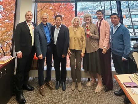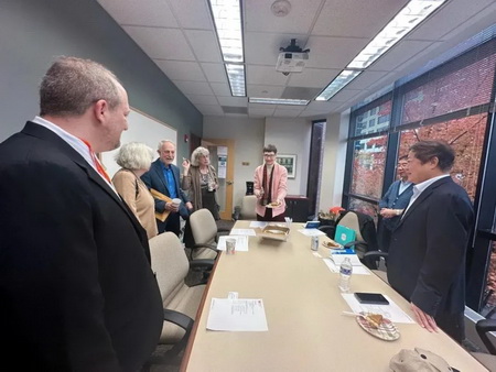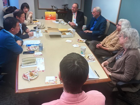 这是刘瑞旗院长继2006年、2007年、2014年之后的第四次到访Monell化学感官研究中心。时值感恩节前夕,Monell中心的Carol Christensen、Nancy Rawson、Gary Beauchamp和Fay Beauchamp等老朋友专程赶来迎候两位院长一行的到来。Gary 博士带来了他的手绘画册和与刘瑞旗院长握手的卡通像手作,Nancy 带来了亲自做的家传感恩节美食分享给大家。