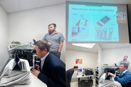 Joel Mainland博士用Zoom连线展示了他的最新研究项目进展——如何实现气味的数字化?随后请大家到实验室参观并亲自试用体验了他的研究模型。在Monell中心工作的三位中国博士Hong Wang、Peihua Jiang和Yali Zhang全程参与了该项目相关的探讨交流。