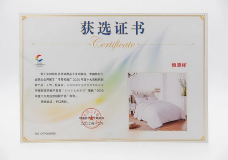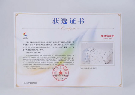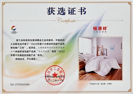 恒源祥家纺已连续四年荣获“十大类纺织创新产品”称号。