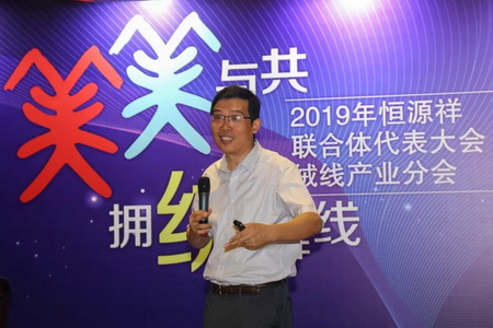 会议伊始,恒源祥商超产业副总经理潘振华就恒源祥商超电商渠道工作做详细汇报。报告回顾了2018年恒源祥商超电商情况,介绍了商超2019年度1月至8月的市场表现及存在的问题,还对“目标与政策”做了解读。