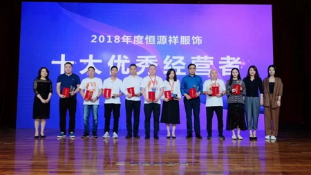 此次服饰分会还评选出了“2018年度恒源祥服饰杰出运营商”,以此表彰他们为恒源祥服饰做出的突出贡献,他们是王海港、刘炜、孙凯情、庄韫奇、张林岳、芦景、侯定云、黄道德、姜蓉、雷六一(排名不分先后,以姓氏笔画为序)。陈晨副总、过莺副总监、罗严副总监为获奖者颁奖,并合影留念。