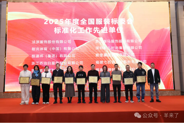 此外,为鼓励先进,树立典型,大会对在推动服装标准化事业健康发展方面做出突出贡献的单位和个人进行了表彰。恒源祥(集团)有限公司被全国服装标准化技术委员会授予“2025年度标准化工作先进单位”荣誉称号。