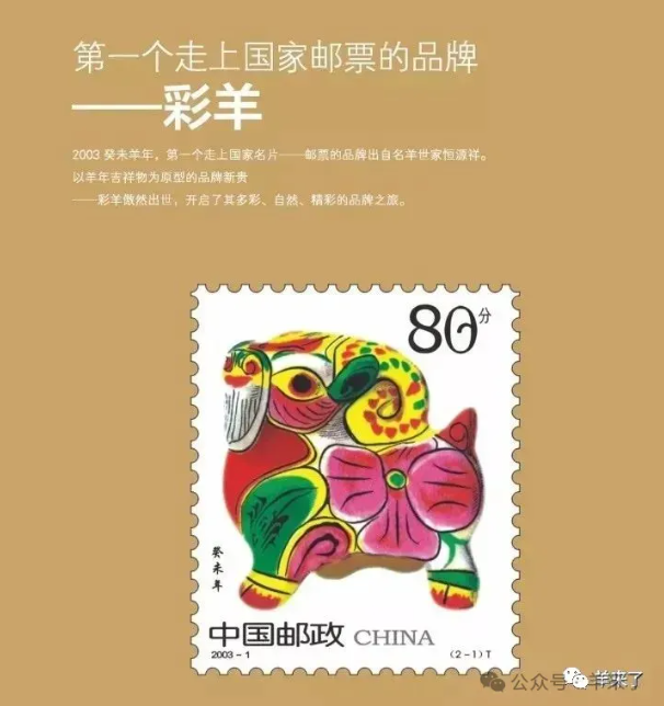2002年,恒源祥集团发起中国羊年吉祥物征集活动,泥塑彩羊作品最终获选,并同步被选定为2003年羊年生肖邮票主图案。以此为契机,恒源祥集团注册“Fazeya”泥塑彩羊立体商标,彩羊品牌由此创立。