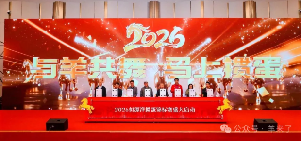 随着八位嘉宾共同按下启动装置,大屏幕上呈现出"与羊共舞、马上掼蛋"的创意画面,既致敬了锦标赛"与羊共舞"的品牌基因,又以"马上掼蛋"的谐音寓意锦标赛在马年扬蹄起势、蒸蒸日上,将现场气氛推向高潮。