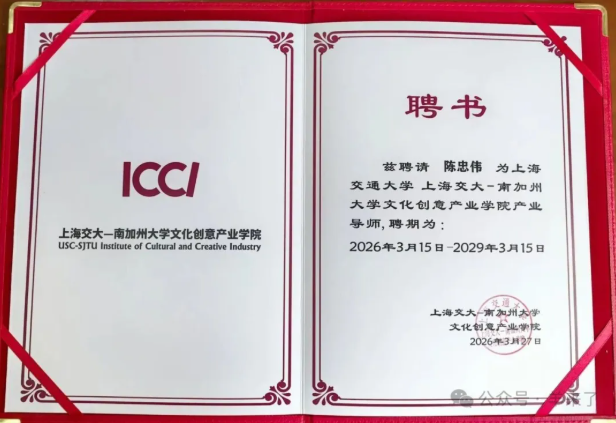 喜报|陈忠伟董事长受聘为上海交大-南加州大学文化创意产业学院产业导师