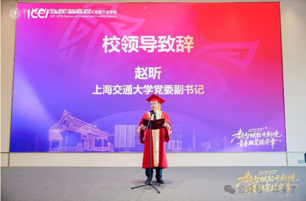 上海交通大学党委副书记赵昕,勉励毕业生始终胸怀国家社会,做文化自信笃行者。拥抱数智时代,做跨界融合创新者,永葆热忱,做终身学习奋斗者,将个人理想融入国家文化创新大局。