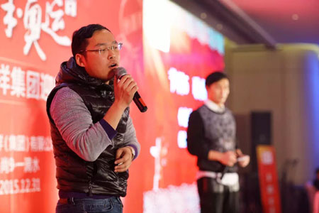 2015年是恒源祥的本命年,也是中国人民纪念抗日战争暨世界反法西斯战争胜利70周年。恒源祥原创音乐剧《犹太人在上海》得到了社会各界的好评,被誉为“高雅与市井、情感与理智、音乐与戏剧高度融合的集大成之作”。该剧与2013《永远的尹雪艳》、2014《大商海》一起组成了“上海三部曲”。年会一开场,《大商海》里的“说书人”——范林元老师用精彩的评弹向大家讲述了“三部曲”的故事,接着演员代表们演唱了充满温馨大家庭感觉的《大饼油条》。
